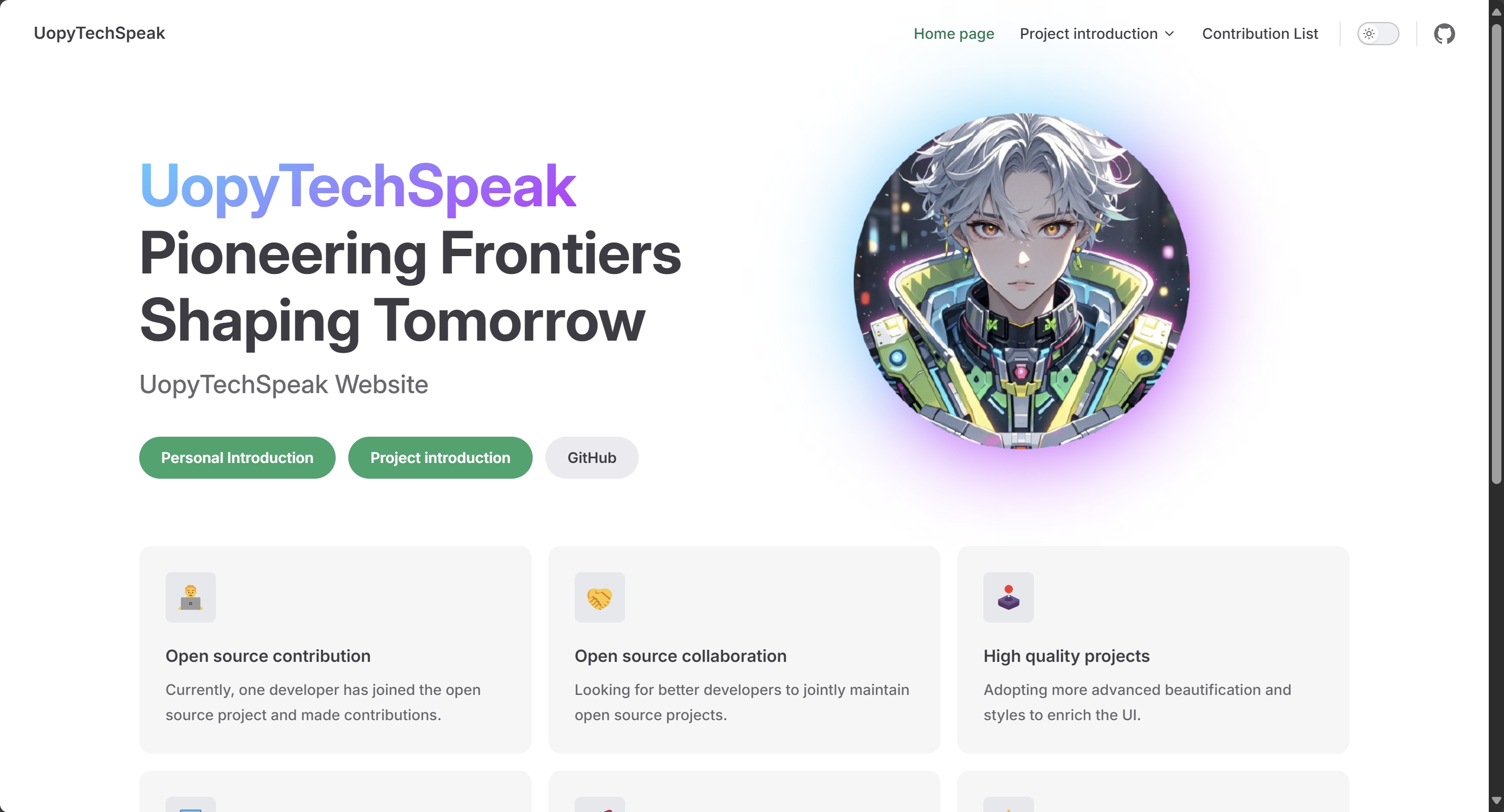 Beautification version project address:https://github.com/UopyTechSpeak/Vitepress-Blogfly